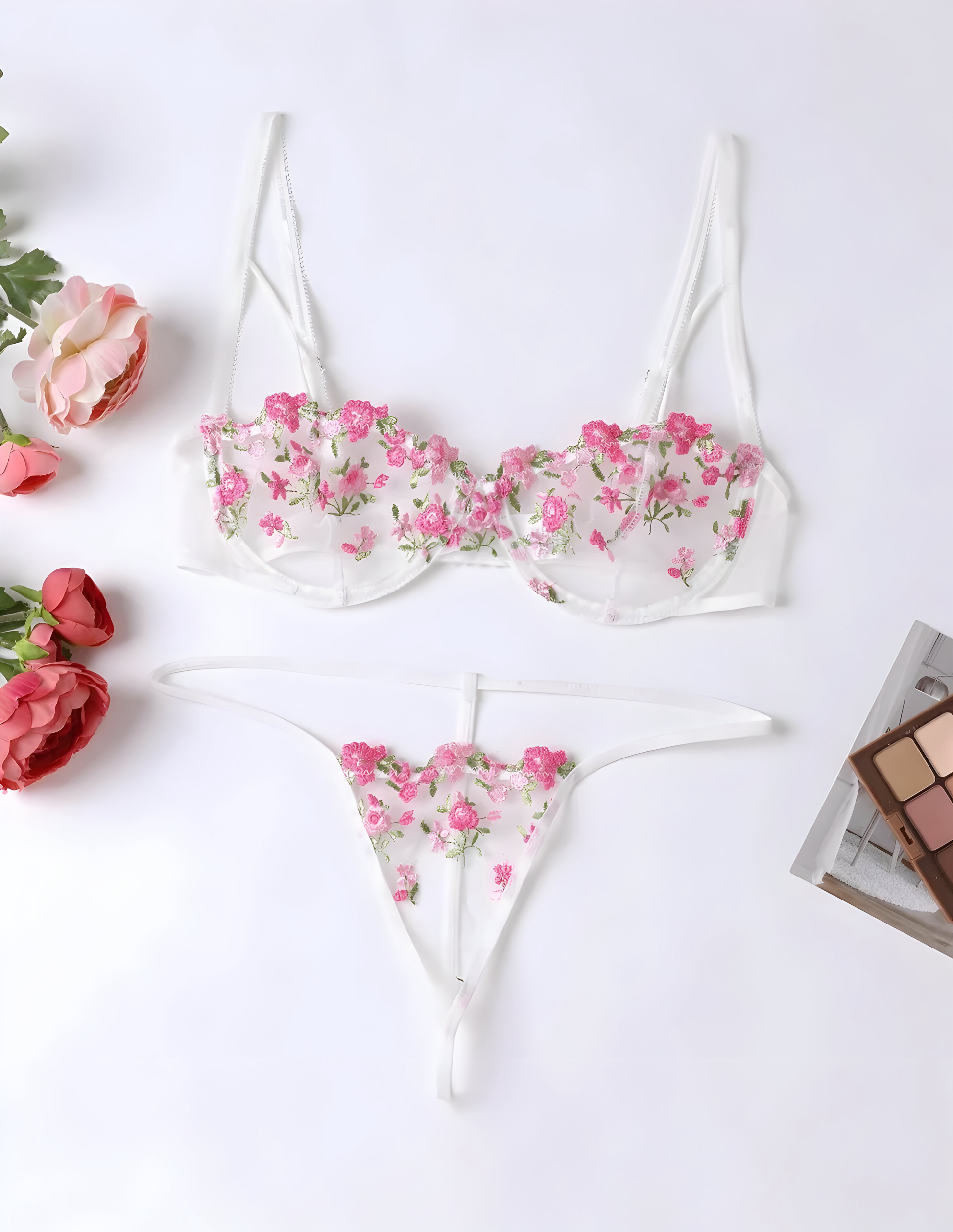 A simple flowery sexy lingerie set